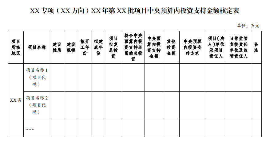 附件:中央預(yù)算內(nèi)投資支持金額核定表